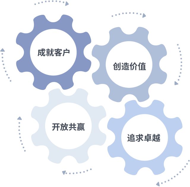 成就客户是一切决策的出发点,创造价值是衡量所有工作的标准,追求卓越是酷游-KU游平台登录做事做人的态度,开放共赢是酷游-KU游平台登录的格局也是最终的结果。价值观的齿轮环环相扣,推动着组织里的每个人不断向前。